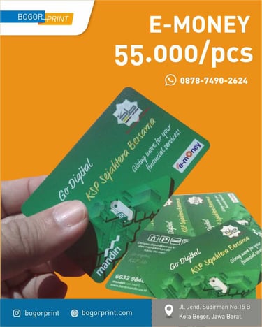 Cetak Emoney untuk promosi atau keperluan ID Card? Cetak emoney custom sekarang di BogorPrint – solusi cetak cepat, murah, dan berkualitas di Bogor.